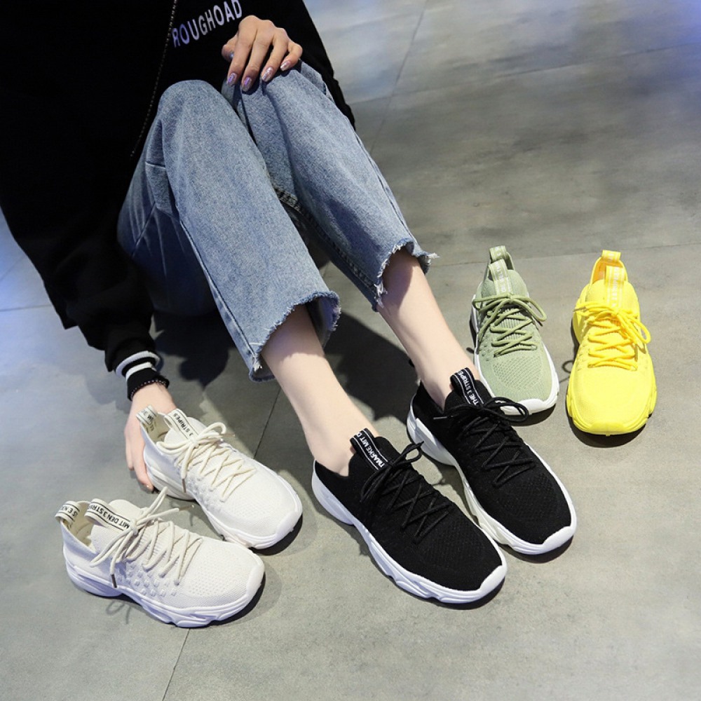 Spring And Summer New Flying Woven Women's Shoes Women's Sports Shoes Female Students Breathable Running Sneakers