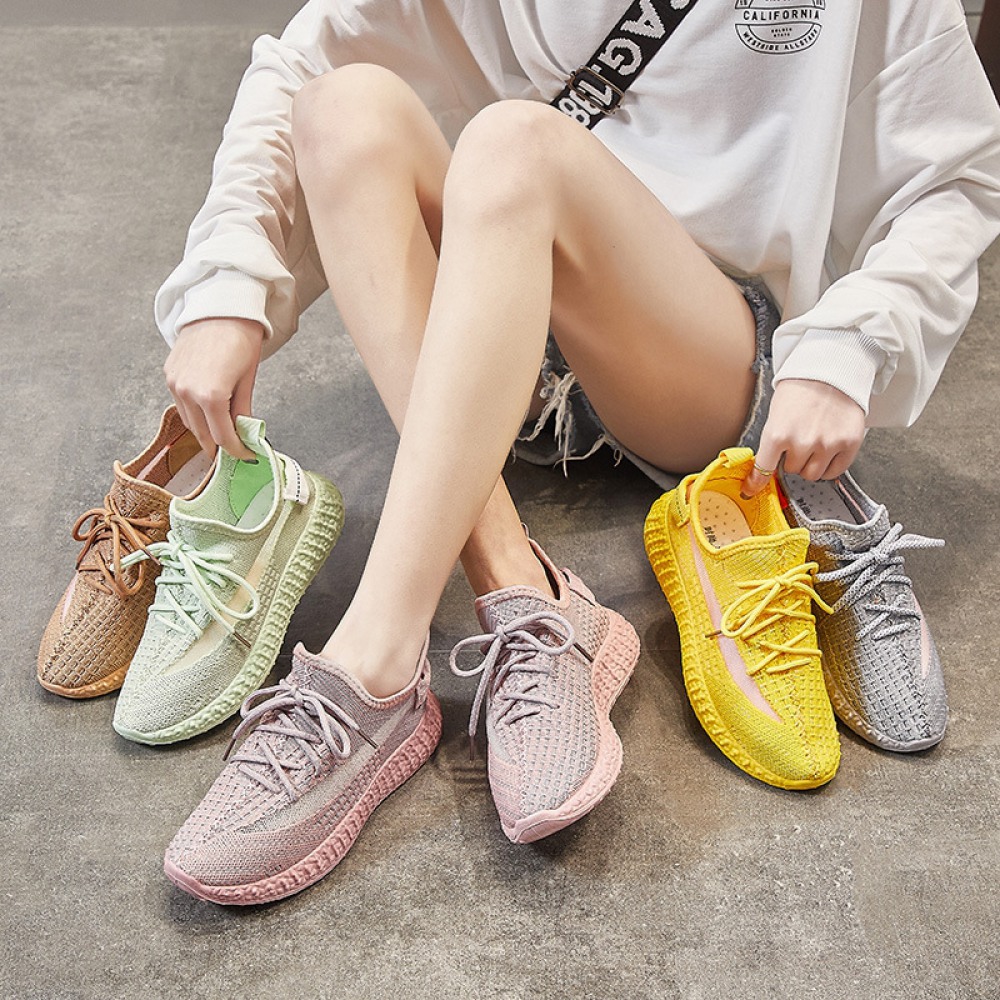 Candy Color Breathable Sneakers Women Summer New Casual Shoes Flying Woven Student Running Shoes