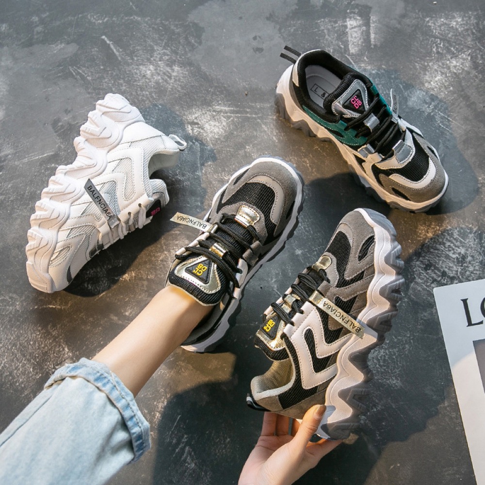 Spring New Student Sports Shoes Women's Running Thick-Soled Height Increase Shoes Women